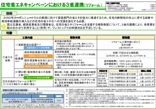 その中でも、既存住宅の省エネリフォームにおける3省連携はリフォームを支援する補助制度です。